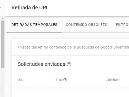 Retirada d’URL és la nova eina de la consola de Cerca de Google, apareguda a les nostres consoles entre el 27 i el 28 de Gener 2020. Sembla que per fi podrem netejar URL d’aquestes que no desapareixen ni amb lleixiu.